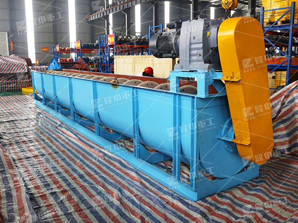 螺旋洗砂機是洗砂機的一種,主要通過設(shè)備內(nèi)的螺旋裝置對砂石料進行攪拌,從而使砂石料中的泥土與水進行混合,從設(shè)備上的流口排出,而砂石料則在螺旋裝置的作用下被逐步篩選,從頂端的出料口排出,從而實現(xiàn)了砂石料的清洗篩選效果。 螺旋洗砂機適用于冶金、建材、水電等行業(yè)的洗選、分J、除雜等作業(yè),用于細粒度和粗粒度物料的洗選作業(yè)。對建筑用砂、筑路用砂石猶為適宜。螺旋洗砂機功率消耗小、洗凈度高。密封結(jié)構(gòu)好、全封閉傳動裝置、可調(diào)式堰板,確保了產(chǎn)品、耐用、清洗、脫水效果好、細粒產(chǎn)品保持穩(wěn)定等特點。
