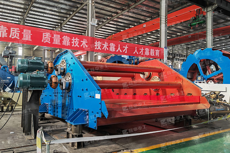 側(cè)板與橫梁、加強(qiáng)板連接均采用扭剪型高強(qiáng)度螺栓,減少焊縫,有效避免焊接應(yīng)力造成側(cè)板開裂。 振動(dòng)頻率高、振幅大、脫水徹底、處理能力高,動(dòng)力源采用激振器,穩(wěn)定可靠,可24小時(shí)連續(xù)作業(yè)。 預(yù)脫水篩板的篩面與水平呈45度,脫水篩板負(fù)傾角安裝,增加脫水面積并促使物料盡快脫水形成濾層。