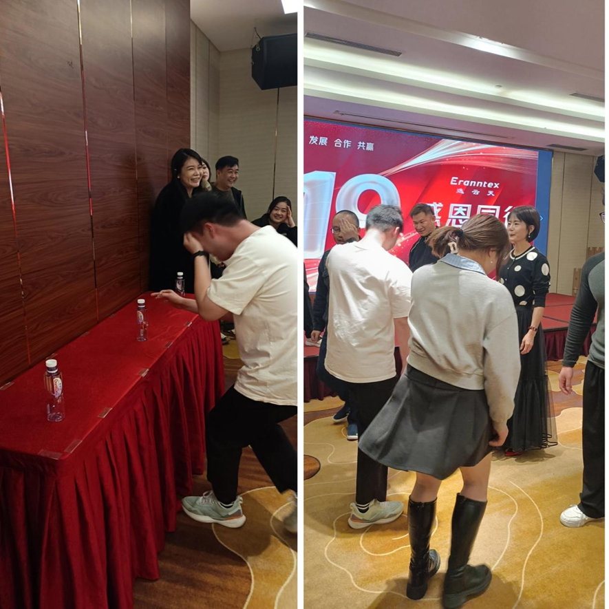 年會現(xiàn)場,趣味橫生的游戲環(huán)節(jié)成為了一大亮點。首當其沖的是“錯誤乘法表”游戲。14位參賽者排隊站好,主持人隨機出九九乘法表題目,答題者必須給出十位數(shù)正確、個位數(shù)錯誤的答案。這一新穎的規(guī)則讓現(xiàn)場笑聲不斷,參賽者們機智應對,展現(xiàn)了逸云天人的聰明才智和團隊協(xié)作能力。