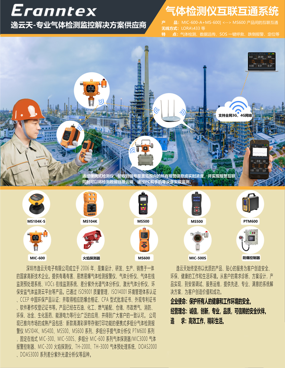 逸云天此次參展產(chǎn)品為氣體檢測(cè)儀、無(wú)線互聯(lián)互通氣體在線監(jiān)測(cè)系統(tǒng),適用于罐體檢修、化工園區(qū)內(nèi)有毒有害氣體及可燃性氣體的泄漏監(jiān)測(cè)報(bào)警,同時(shí)可以遠(yuǎn)程查看視頻監(jiān)控及數(shù)據(jù)濃度等。